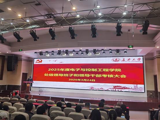 3月24日晚19:00,电控学院在校本部学术交流中心报告厅召开2025年度处级领导班子和领导干部考核述职大会暨学院教职工大会。会议由院长闫茂德主持。学院党委书记贺炳彦代表领导班子作2025年度领导班子述职报告。一是全面贯彻落实新时代党的建设总要求,持续提升党建工作质量;二是紧紧围绕立德树人根本任务,持续提升学科核心竞争力;三是强化有组织科研,增强科研创新实力;四是坚持引育并举,打造高水平师资队伍;五是落实“两个典礼”...
