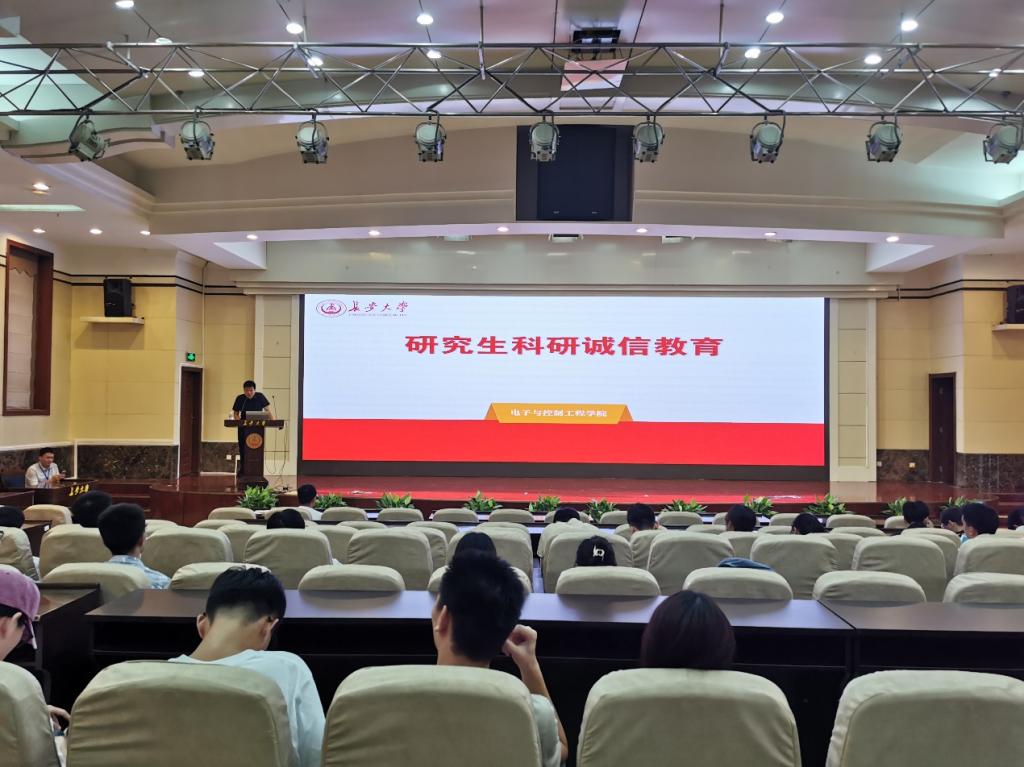 为进一步弘扬学术诚信,促进形成科学严谨、风清气正、求真务实、勤奋创新的良好学术氛围,7月12日,电控学院召开了研究生学风建设与科学道德教育,研究生辅导员刘平利和全体研究生参加。