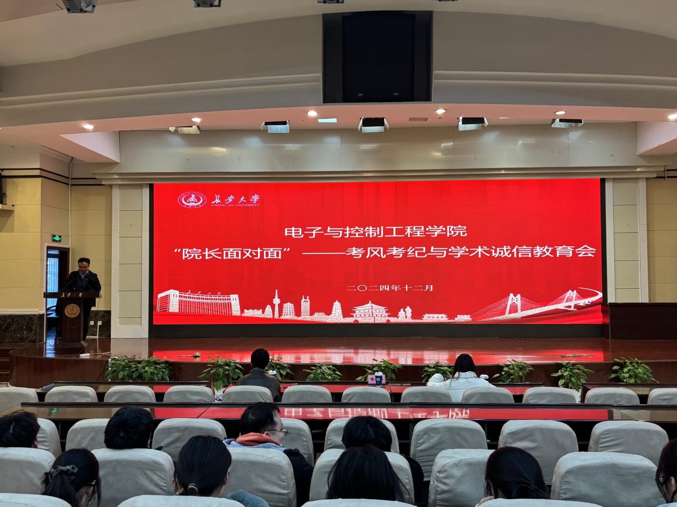 为进一步严肃考风考纪和学术诚信,树立优良的学风和正确的学术价值观,提升学院研究生培养水平,12月13日下午,电控学院“院长面对面”(第17期)之研究生考风考纪与学术诚信专题教育会在南校区学术交流中心举办。电控学院副院长路庆昌,研究生辅导员王佩佩、鲁彦麟及2024级全体硕士、博士生研究生参加。
