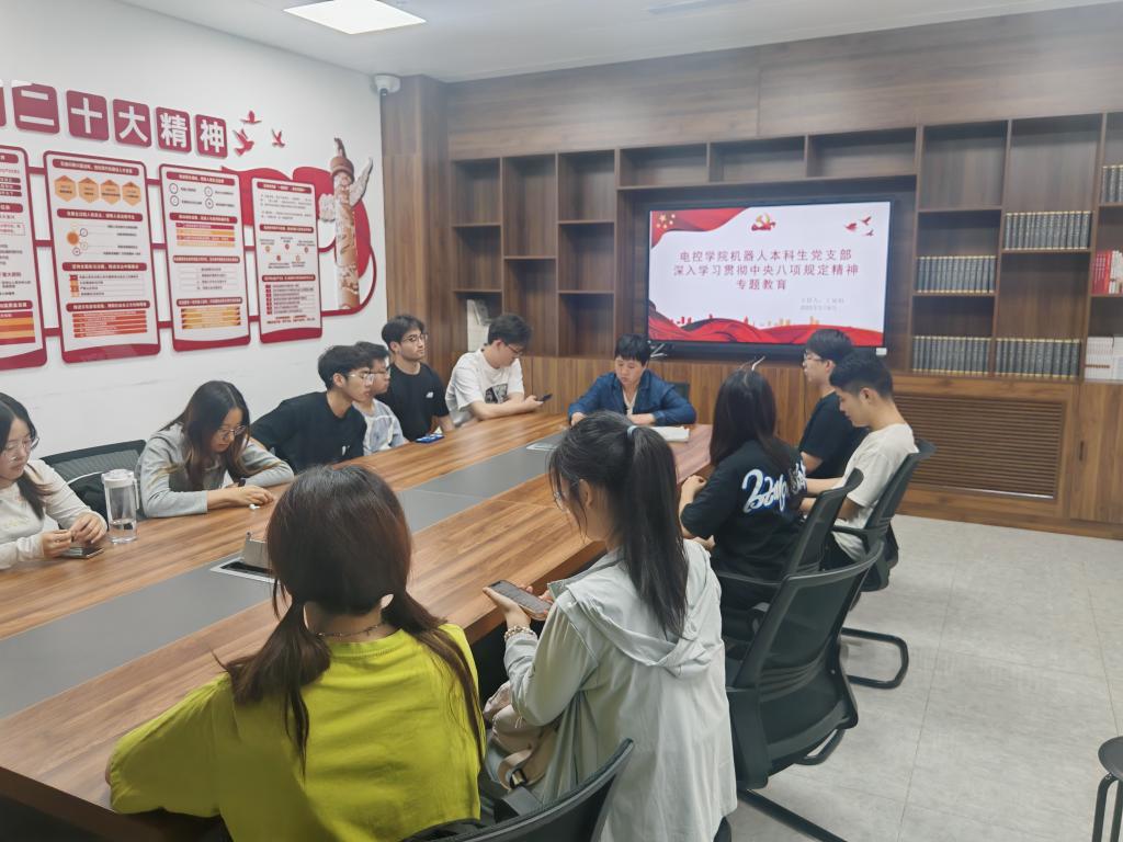 电控学院机器人本科生党支部将以此次学习教育为契机,紧扣关于开展深入贯彻中央八项规定精神学习教育的部署要求,结合工作实际,锲而不舍贯彻中央八项规定精神,加强自身作风建设,为学院高质量发展贡献青春力量。