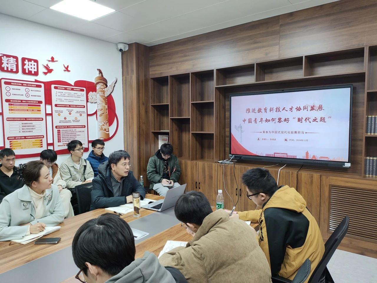 为引导支部党员提高政治觉悟,积极投身国家发展大局,为实现教育强国目标贡献力量,电控学院卓越本科生党支部于12月4日在327会议室开展专题学习会议,邀请学院党委书记贺炳彦讲授题为“推进教育科技人才协同发展 中国青年如何答好‘时代之题’”的专题党课,学院党委副书记高婷婷、党支部书记张馨月、党支部副书记刘平利及全体党员参会。