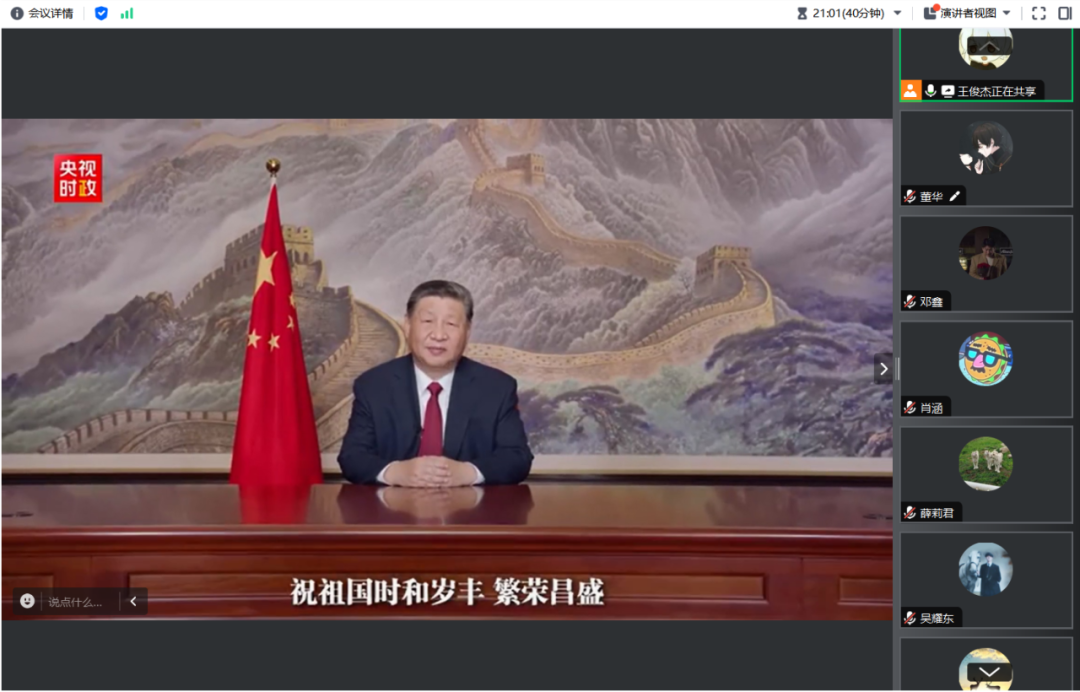 为了迎接即将到来的2025年春节,支部特别组织全体党员观看了习近平主席发表的2025年新年贺词。贺词中,习近平主席回顾了过去一年的辉煌成就,展望了新一年的美好愿景,并寄语全国人民要继续努力、不懈奋斗,为实现中华民族伟大复兴的中国梦贡献力量。观看过程中,党员们神情专注,深受鼓舞,纷纷表示要在新的一年里更加努力学习、积极工作,以实际行动践行党的宗旨和使命。