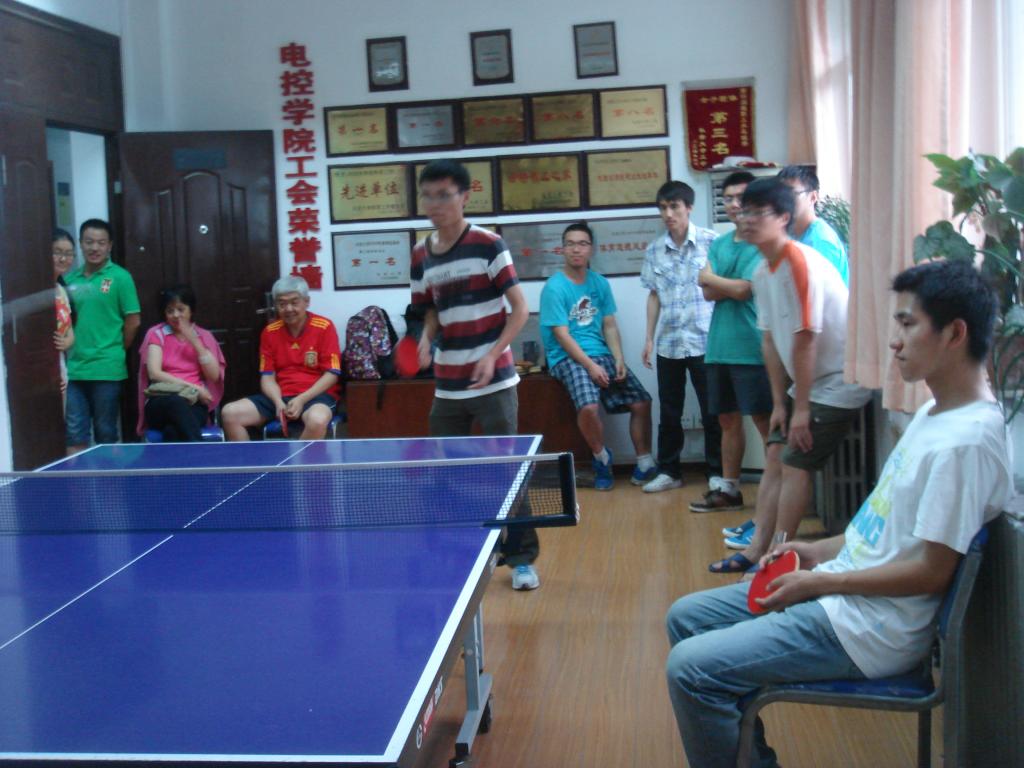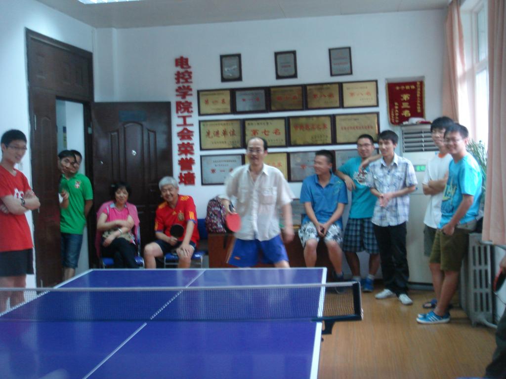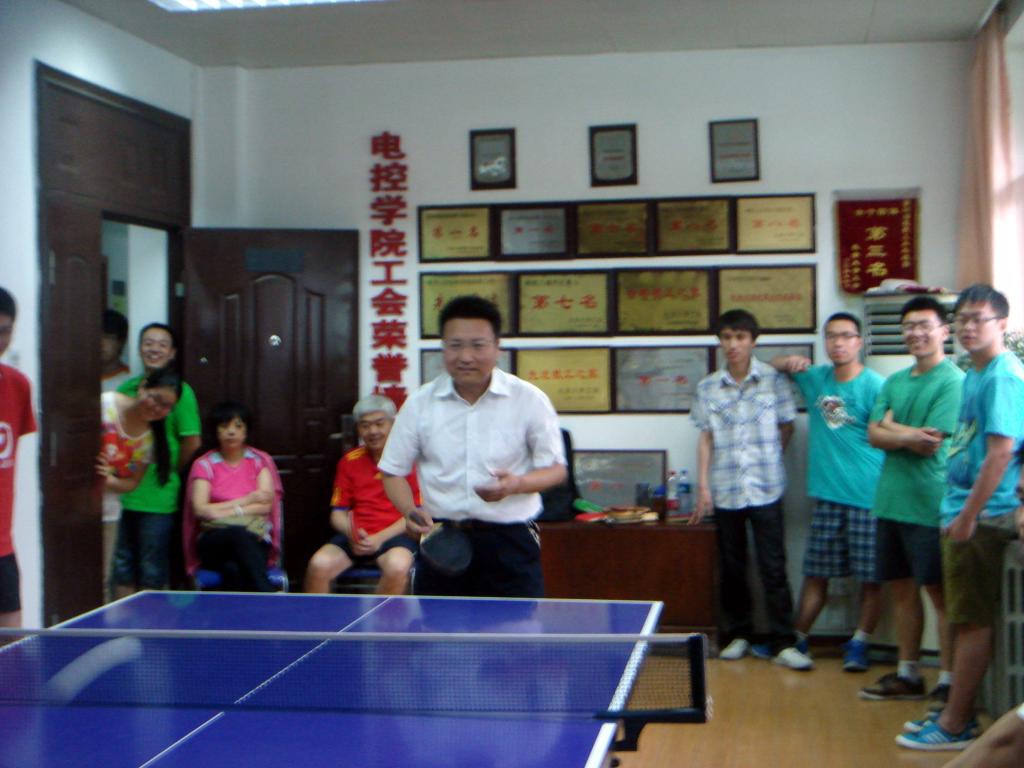 为欢送2013届毕业生,增进师生感情,我院工会和自动化系于2013年6月24日下午在工会活动室组织学院教师和2013届毕业生之间进行了一场乒乓球友谊赛,用一种别样的方式送别和祝福本届毕业生同学。