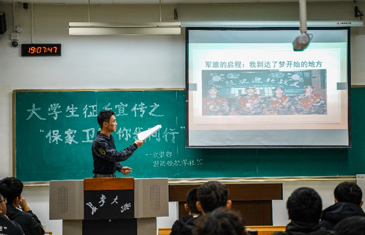 适逢“4·15”全民国家安全教育日,为增强学生对总体国家安全观的认识与理解,同时鼓励我院学生积极响应国家号召应征入伍,助力推进国防和军队现代化建设,电控学院联合我校武装部指导国防领航学社于4月2日在明远WM1309教室开展了以“保家卫国、你我同行”为主题的征兵宣讲活动。本次宣讲活动由yl8858永利集团武装部刘天宇老师指导,武装部弘毅中队成员赵大乐同学主讲,电控学院本科各年级学生代表和2020级辅导员高朋举老师参加。