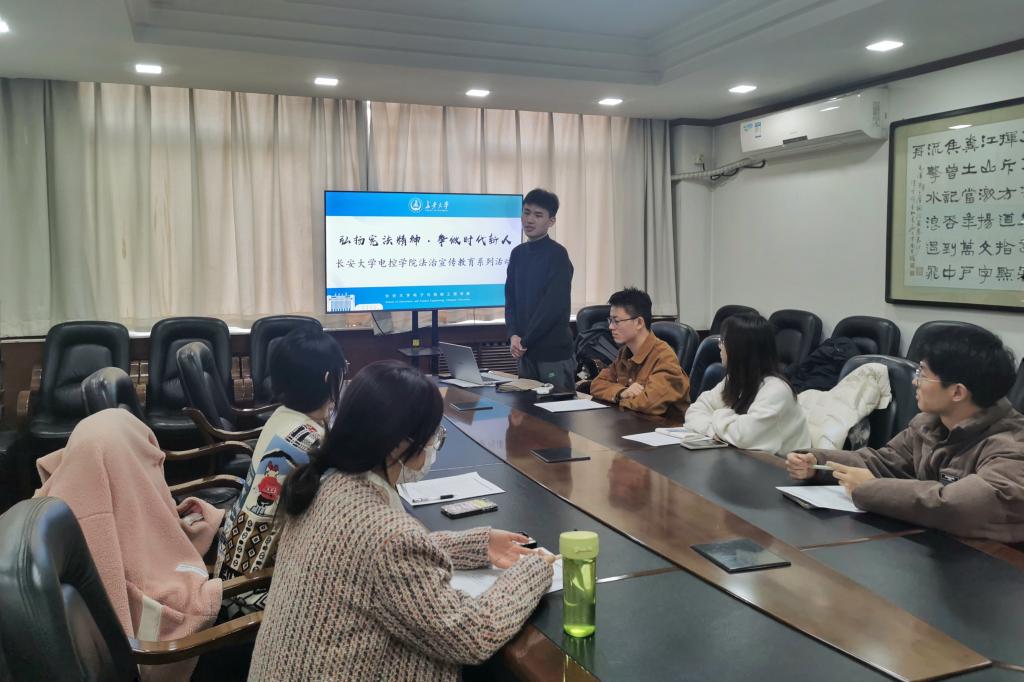 在第十个国家宪法日到来之际,为深入学习贯彻习近平法治思想,落实学校和学院“宪法宣传周”有关工作要求,12月5日下午,电控学院2023级研究生各党支部在南校区北院学术交流中心会议室开展“学宪法 讲宪法”主题党日活动,辅导员陈凡及全体2023级研究生党员参加活动。