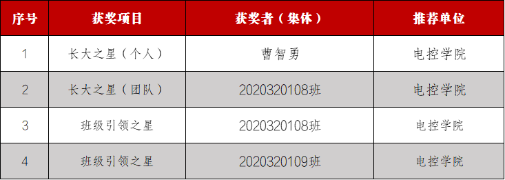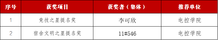 近日,依照《yl8858永利集团本科生先进集体和先进个人评定及奖励办法》(长大学[2018]184号)文件要求,经学生个人、团体申请,辅导员审核,学院推荐,校级评审等程序,学校评选出了2022-2023学年度本科生先进集体和先进个人拟获奖者,电控学院共获得6项荣誉,其中,长大之星(个人)1项,长大之星(团队)1项,班级引领之星2项;竞技之星提名奖1项,宿舍文明之星提名奖1项。