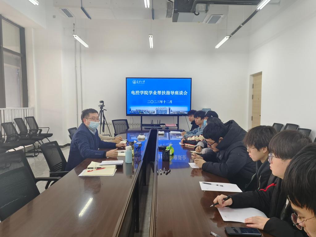 为加强学院学风建设,帮助学业困难学生提高学习自觉性和自信心,12月26日下午,电控学院在明德园智通大厦319会议室召开了2022级学业帮扶指导座谈会。学院党委副书记李阳,辅导员王博、李慧及2022级学生代表参加。
