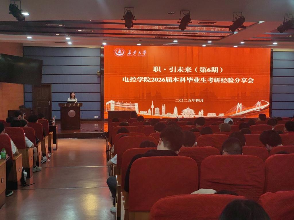 为帮助2026届本科毕业生明确考研方向,提升备考竞争力,电控学院于4月29日下午在北校区北辰楼二楼会议报告厅成功举办了“职·引未来”(第6期)——考研经验分享会。本次活动特别邀请了2021级考研成功的学长们分享经验,学院学办主任刘平利、2021级辅导员张馨月及2022级全体本科生参加,会议由2022级辅导员李慧主持。