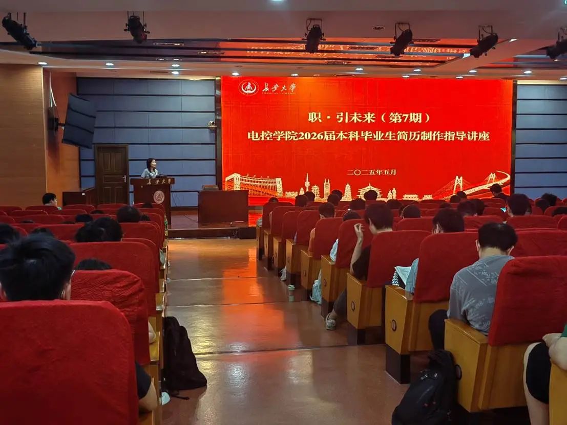 为切实提升2026届本科毕业生就业竞争力,帮助学生掌握简历制作技巧,增强职业规划意识,5月15日下午,电控学院卓越本科生党支部在北辰楼会议中心二层报告厅组织开展了“职·引未来”(第7期)——简历制作指导讲座。本次活动特别邀请了2022级研究生马浩然、李积伟、胡子萱、秦海龙分享经验,学院党委副书记高婷婷,学办主任、卓越本科生党支部副书记刘平利及2022级全体本科生参加,讲座由2022级辅导员李慧主持。