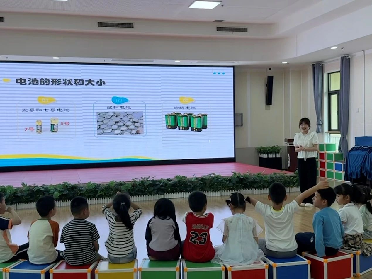 志愿者以“电池小精灵”为引,通过形象生动的比喻展开教育活动,当看到视频中电机驱动的机器人灵活舞动、电池供电的无人机翱翔天际时,孩子们眼中闪烁着好奇与惊叹的光芒,纷纷举手提问,勇敢探索未知的知识领域,现场气氛热烈。