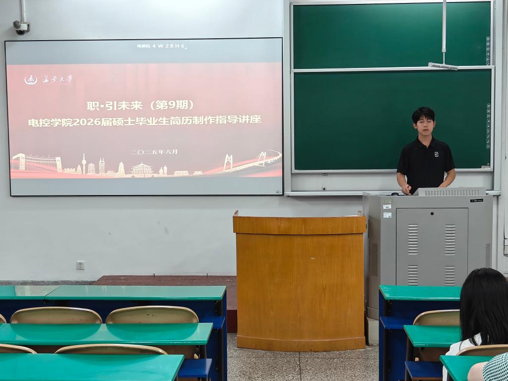 为切实提升2026届硕士毕业生的就业能力,精准把握简历制作的核心要点,进一步强化职业规划意识,6月4日晚,电控学院在南校区北院b281教室举办了职·引未来(第9期)——研究生简历制作指导讲座。本次讲座邀请了2025届硕士毕业生胡子萱、马浩然、秦海龙、李积伟作为主讲嘉宾,2026届硕士毕业生参加,讲座由研究生辅导员王佩佩主持。