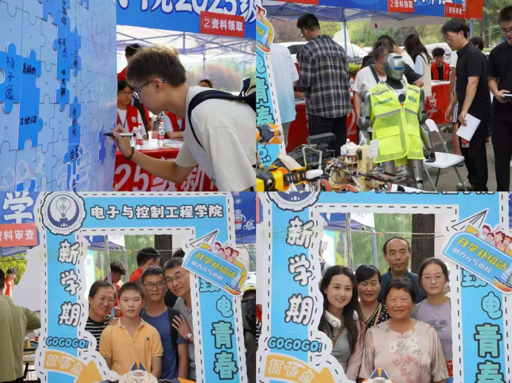 迎新现场最吸睛的莫过于电控学院的“科技迎新角”。智能机器人灵活舞动,引来新生阵阵惊叹;智能小车精准避障,展示着电控技术的魅力。新生们在“梦想拼图”前合影打卡,用彩色拼块拼出“我爱电控学院—欢迎新同学”字样,寓意着即将开启的精彩大学生活。许多同学表示,这些科技展示让他们对专业学习充满期待。