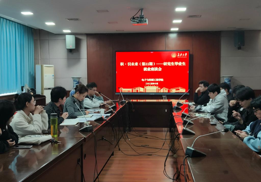 10月27日,电控学院在南校区学术交流中心第五会议室开展职·引未来(第11期)——研究生毕业生就业座谈会,学院党委副书记高婷婷、研究生辅导员王佩佩、贾敏及毕业生代表参加会议。