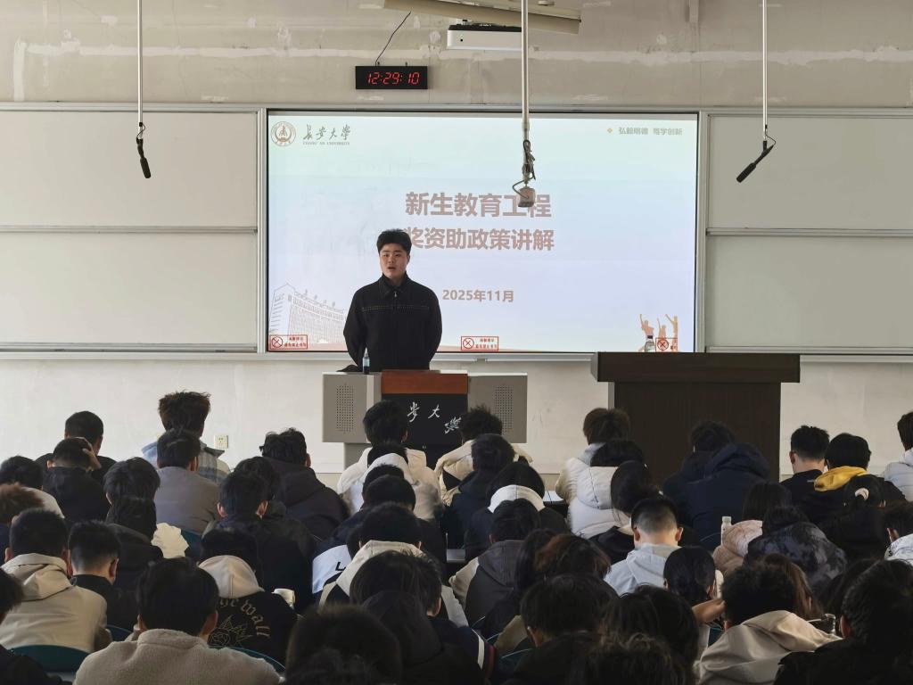 为深入落实新生教育工程,帮助2025级新生全面了解国家及学校各类奖助政策,助力学生安心就学、成长成才,11月18日,yl8858永利集团在WM1201教室组织开展了2025级新生奖资助政策宣讲主题班会。本次班会由2025级本科生辅导员吴耀东、孙超共同主讲,学院全体2025级本科生参加。