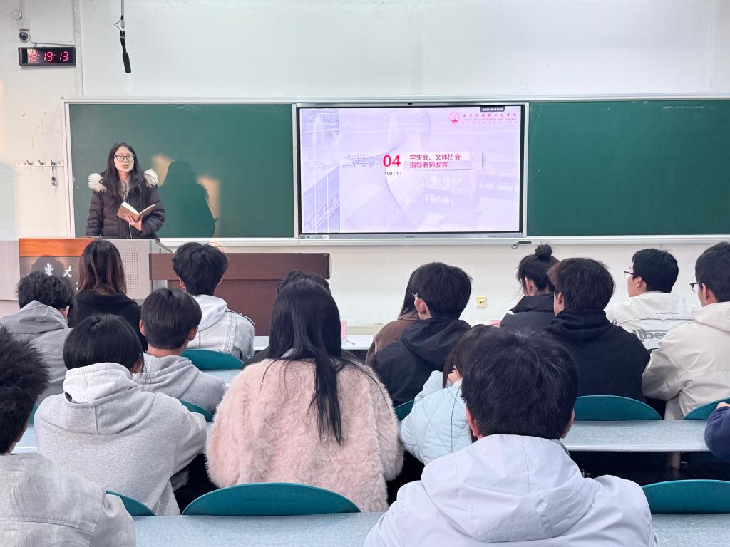 员工会执行主席张子涵与文体协会执行主席孙跃函分别对上个学期的工作进行全面总结,充分肯定了两部门在上一阶段取得的工作成效,并对本学期重点工作进行部署,明确将春季运动会作为本学期核心工作任务,鼓励全体成员凝聚核心、履职尽责、积极作为。