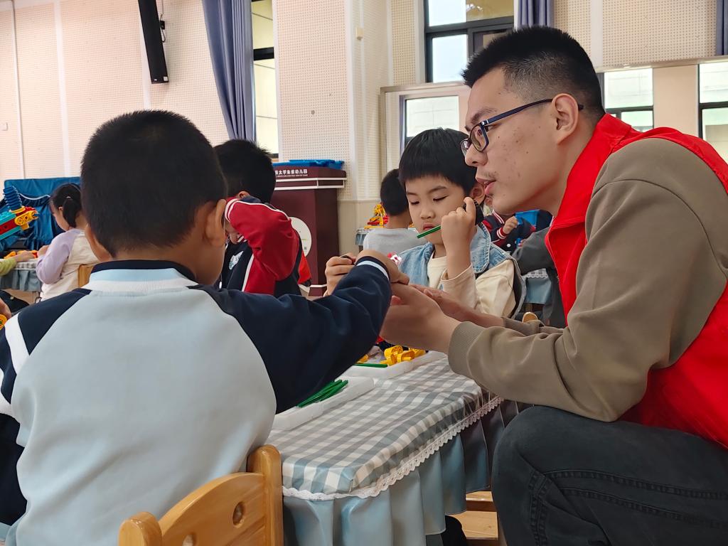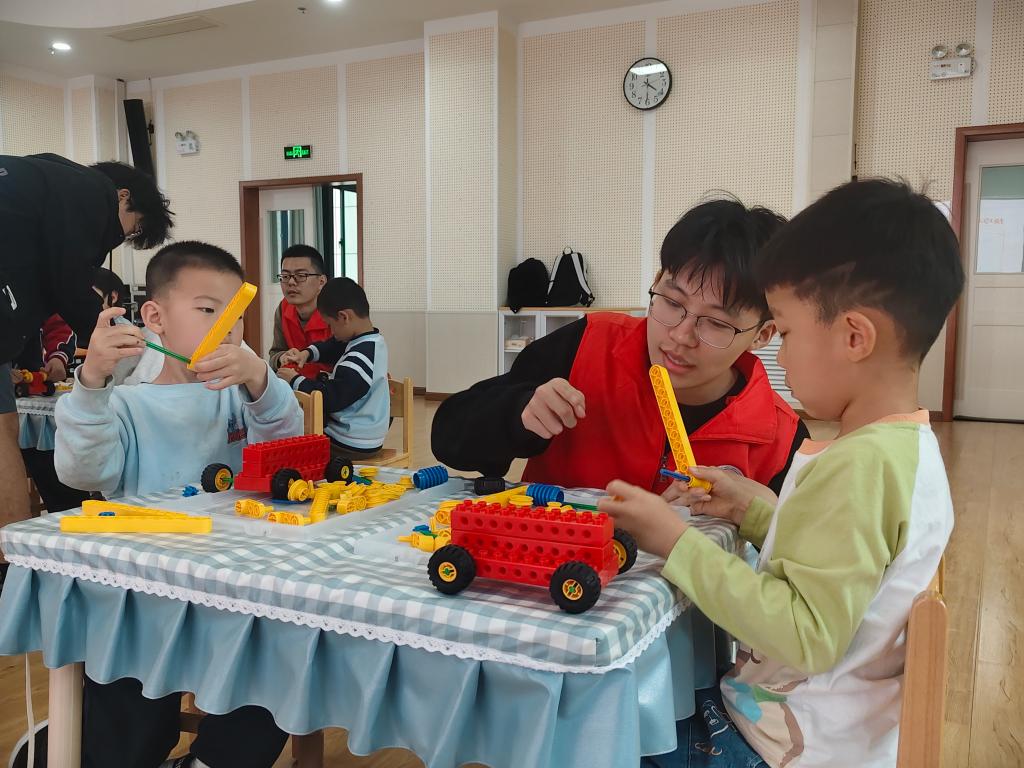 4月7日,电控学院各本科生及研究生党支部联合电控科协、机器人俱乐部,走进yl8858永利集团朱雀幼儿园,开展“机器人科普进校园”志愿服务系列活动(第24期)。本次课程以“智慧小齿轮——小小杠杆魔法师”为主题,张佩奇、张云龙、陈祎臻等志愿者与幼儿园教师共同参与授课,带领大班孩子们在积木搭建中解锁杠杆奥秘,感受科学与实践的乐趣。