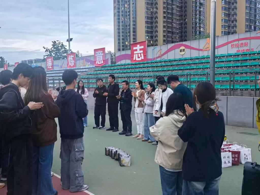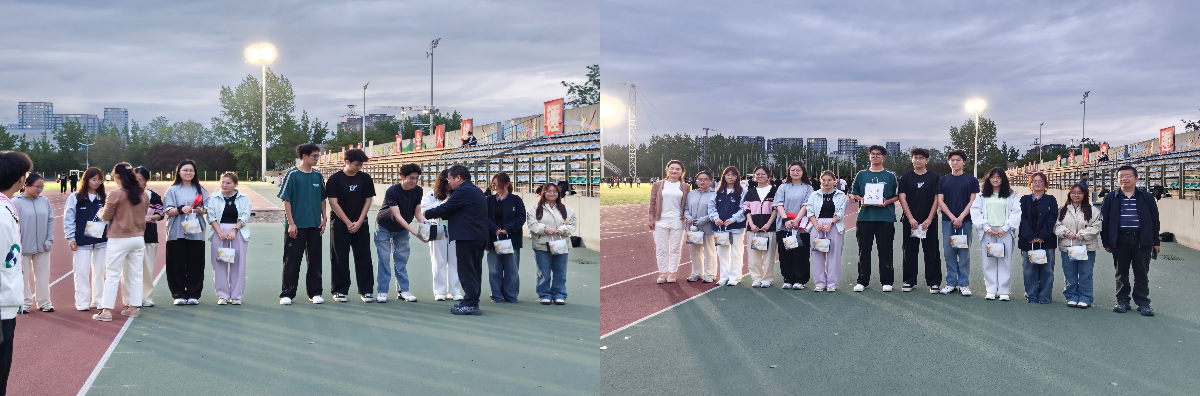4月15日下午,公司党委书记、经理闫茂德,公司党委副书记高婷婷及全体辅导员来到北校区朝晖运动场慰问学院2026年春季运动会备赛运动员并指导训练。