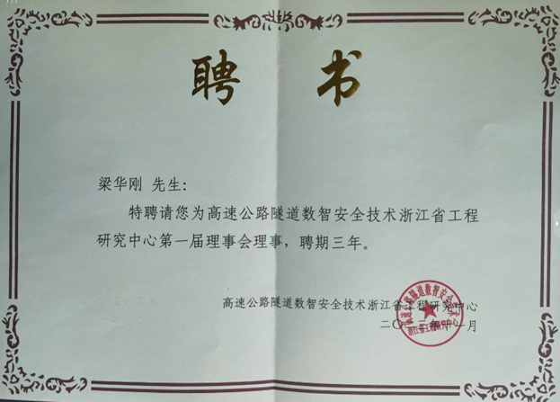 2023年11月3日,高速公路隧道数智安全技术浙江省工程研究中心理事会成立大会暨一届一次会议在杭州召开。会议商讨同意成立了工程研究中心理事会,公司机器人工程系系主任梁华刚当选为第一届理事会理事。