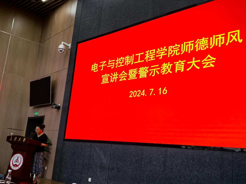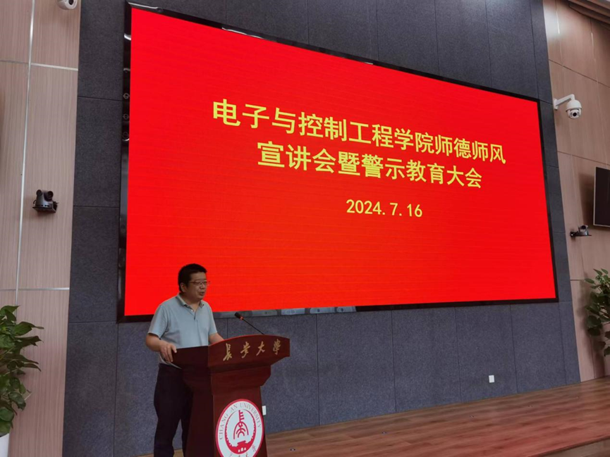 会后,学院召开师德师风宣讲会暨警示教育大会。闫茂德结合《新时代高校教师职业行为十项准则》,从坚定政治方向、自觉爱国守法、潜心教书育人、关心爱护员工、遵守学术规范、积极奉献社会等方面进行宣传教育。他表示,加强师德师风建设是贯彻党的教育方针、建设新时代教师素质的关键,是提升人才培养质量的根本保证,是评价教师队伍素质的第一标准。希望广大教职工不仅要具备深厚的学术素养和严谨的科研态度,还要在工作中坚守师德底线,做到“学为人师,行为世范”。