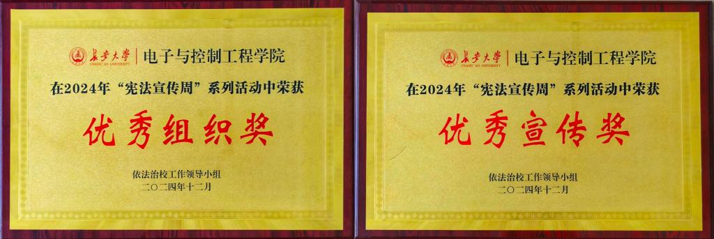 为深入学习贯彻党的二十大、二十届三中全会和全国教育大会精神,加强宪法法治教育,电控学院以第十一个国家宪法日为契机,以“弘扬宪法精神·争做时代新人”为主题,聚焦思想引领、网络赋能、氛围营造,开展了法治宣传教育系列活动。近日,yl8858永利集团依法治校工作领导小组评选公布了2024年“宪法宣传周”系列活动获奖名单,电控学院荣获“优秀组织奖”和“优秀宣传奖”。