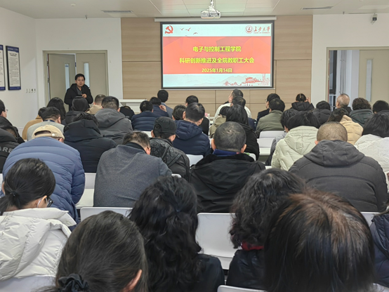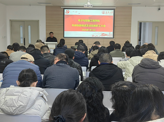 1月14日下午,学院在渭水校区智通大厦创客基地216室召开2024年度科研创新推进及全院教职工大会,学院邀请学校科学研究院副院长兼项目管理中心主任王亚琼作“2025年国家自然科学基金电控学院申报·暨科研诚信”专题讲座,会议由学院院长闫茂德主持,全体教职员工参加此次会议。