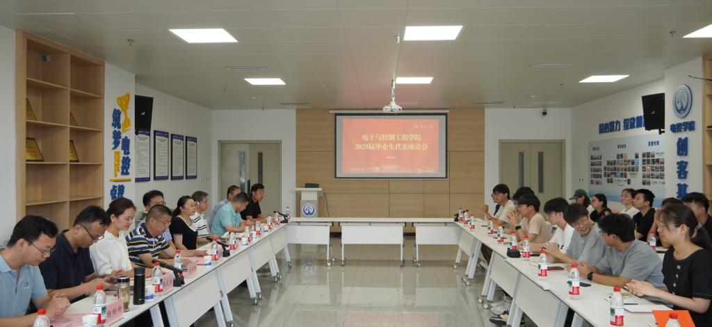 6月18日下午,电控学院在北校区明德园智通大厦1号楼216创客基地召开2025届毕业生代表座谈会。学院党政领导、各系主任、全体辅导员及24名本科生、研究生代表参加会议。会议由学办主任刘平利主持。